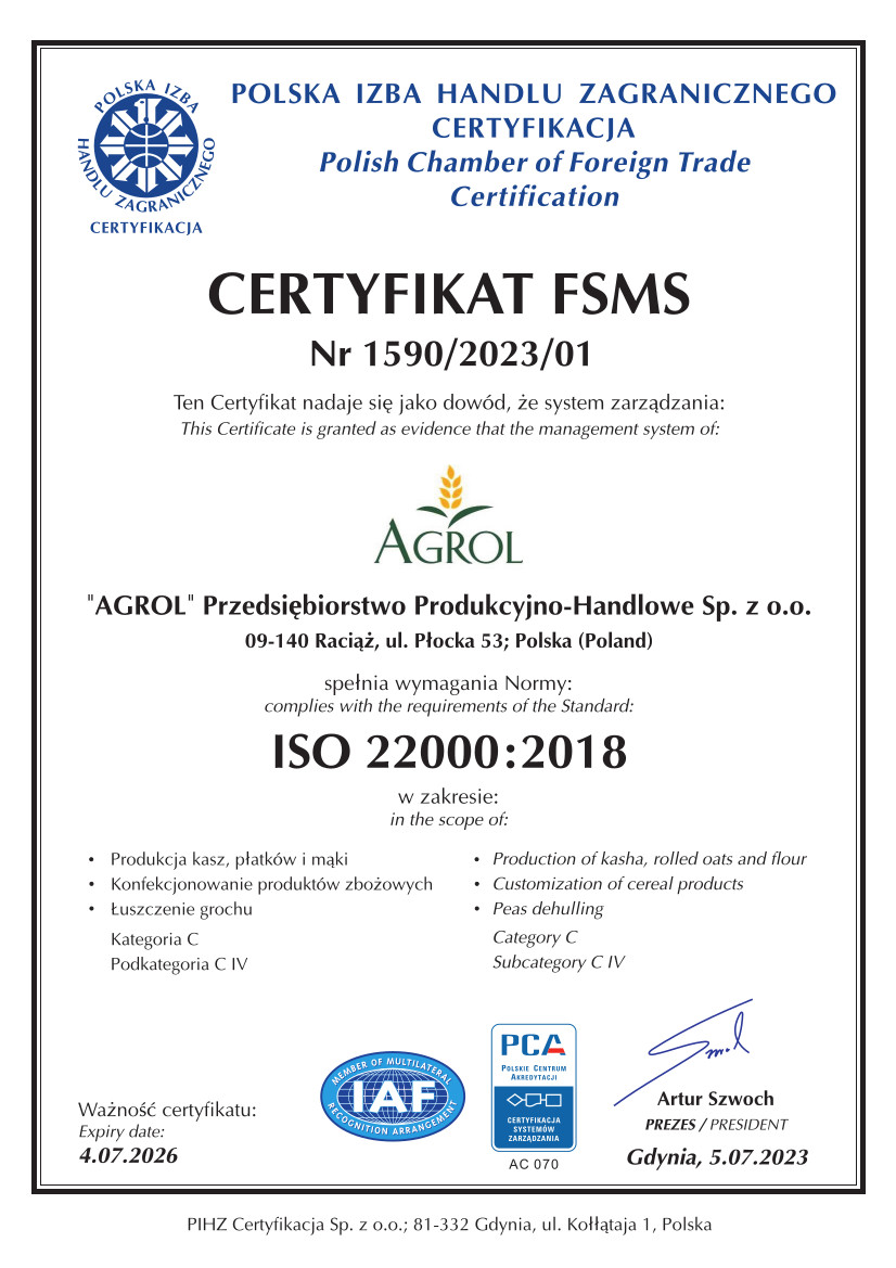 POLITYKA JAKOSCI "AGROL" Przedsiębiorstwo Produkcyjno - Handlowe Sp. z o.o. w Raciążu www.agrol.euNaturalnie zdrowe